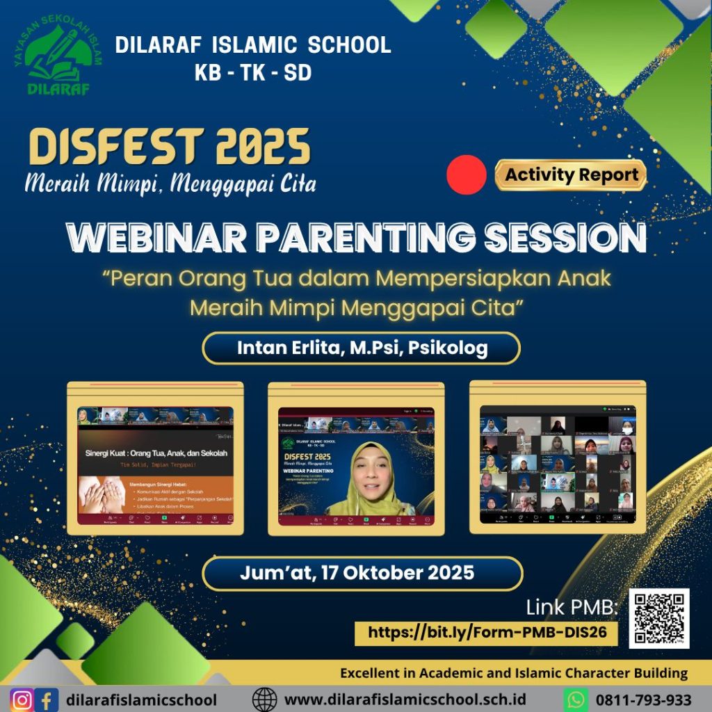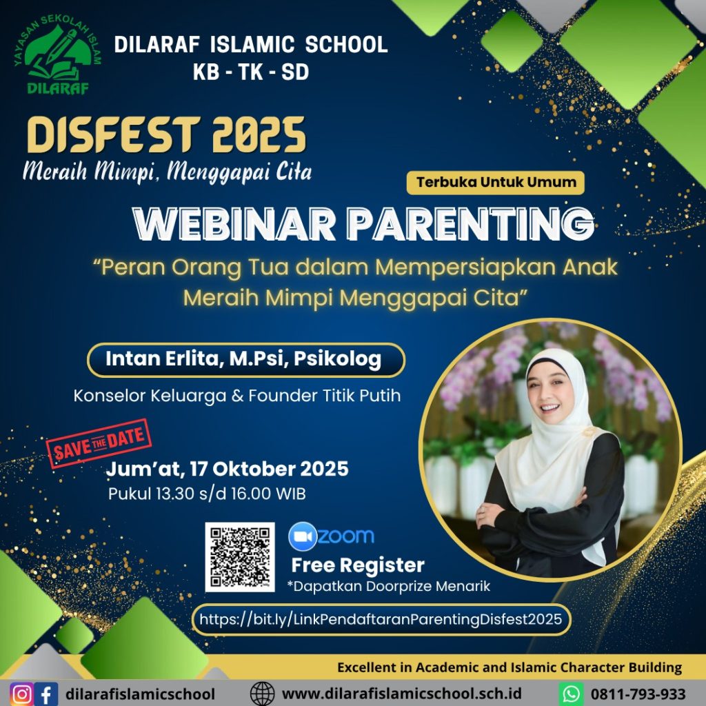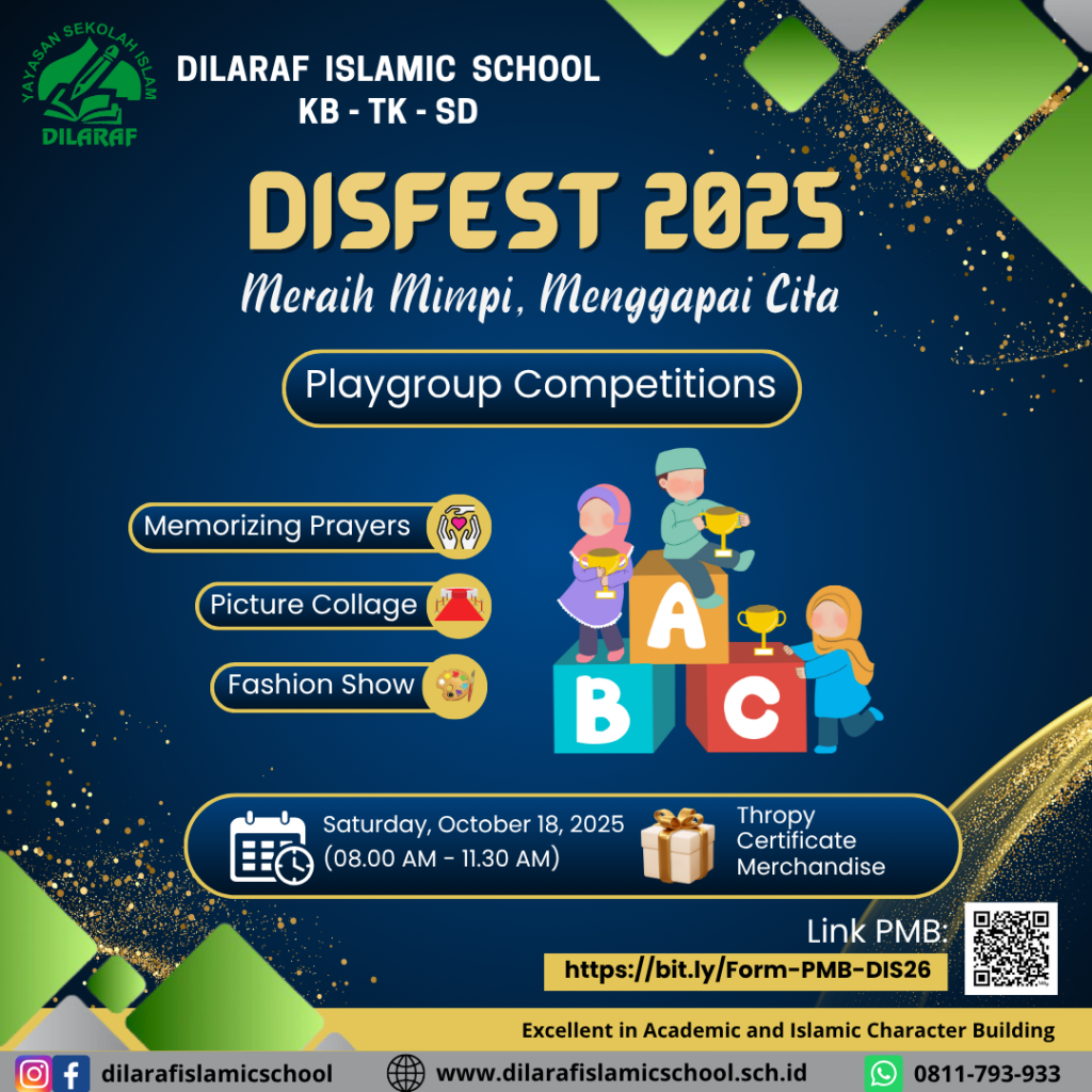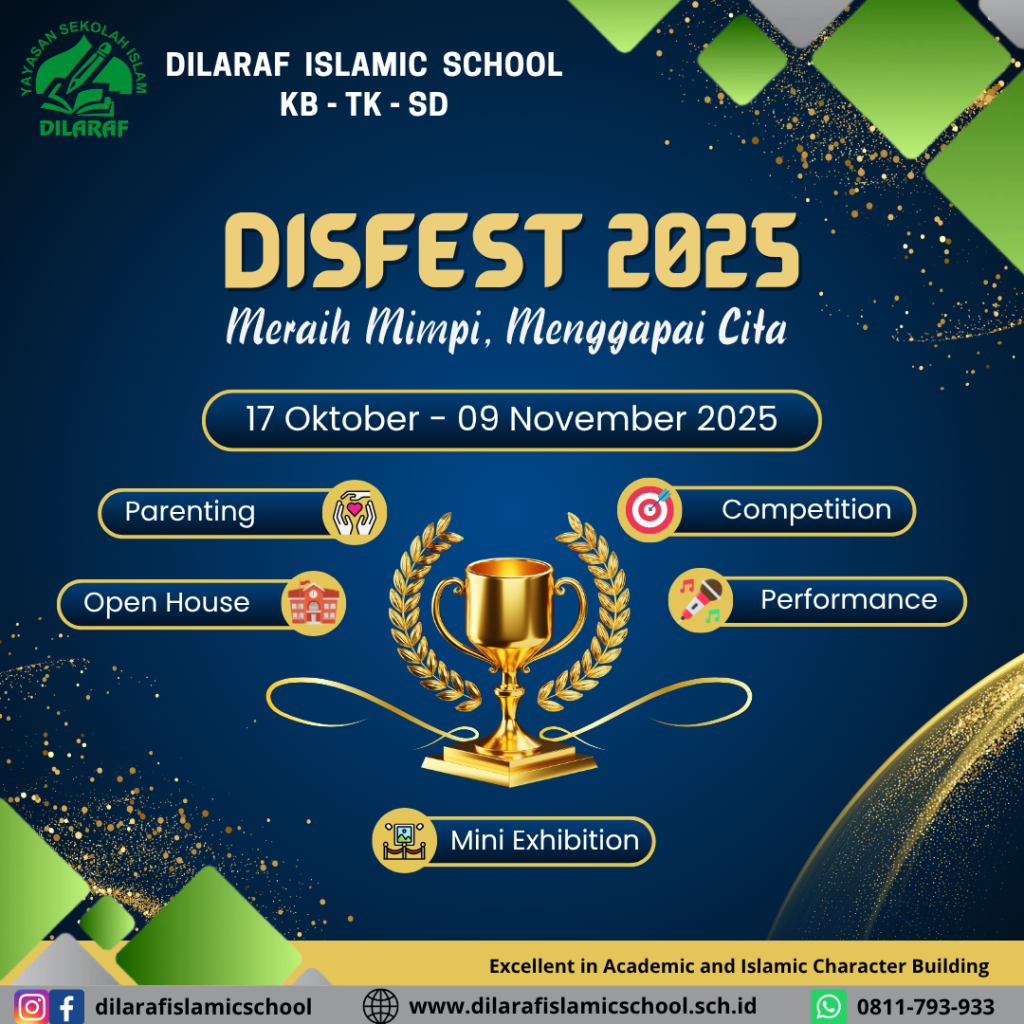 بسم الله اَلسَّلاَمُ عَلَيْكُمْ وَرَحْمَةُ اللّهِ وَبَرَكَاتُهُ Alhamdulillah rangkaian perlombaan KB – TK dalam kegiatan Dilaraf Islamic School Festival (DISFest 2025) telah terlaksana dengan baik. Ananda hebat telah berani mencoba dan berpartisipasi dalam perlombaan. Semoga dengan adanya kegiatan ini dapat meningkatkan bakat, minat dan keberanian Ananda. Insya Allah pemenang akan diumumkan pada hari Ahad, 09 […]