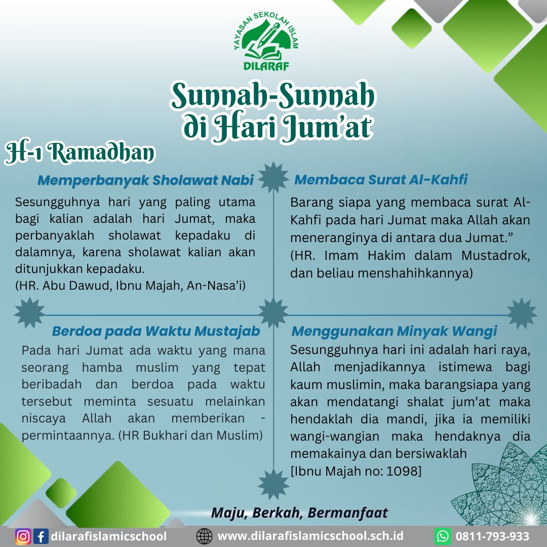 Pada hari Jum’at terdapat sunnah-sunnah yang dianjurkan untuk dilakukan, sebagai berikut: