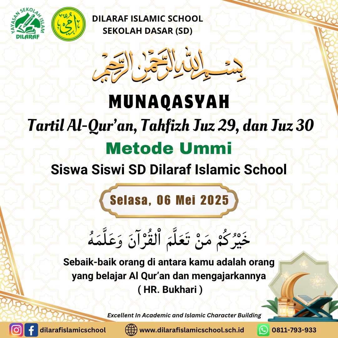 Selamat mengikuti Munaqasyah untuk siswa siswi SD Dilaraf Islamic School Tahun Ajaran 2024-2025.